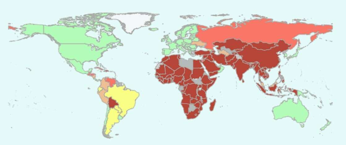 DÜNYA SAĞLIK ÖRGÜTÜ’NÜN YAYINLADIĞI HARİTAYA GÖRE TÜRKİYE EN YÜKSEK KUDUZ RİSKLİ ÜLKELERDEN BİRİSİ