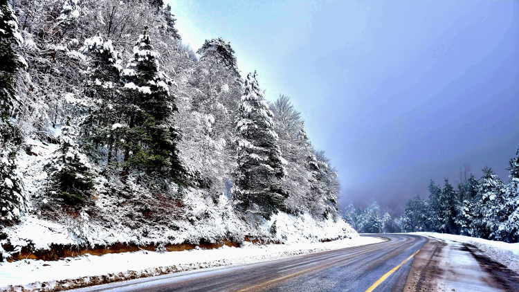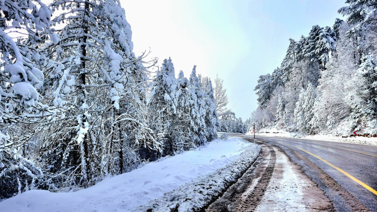 Kütahya-Bursa bağlantı yolunda kar güzelliği