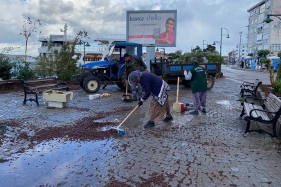 Sabah saatlerine kadar yoğun çabalarını sürdüren Ayvalık Belediyesi Temizlik İşleri ekipleri ise kuvvetli fırtına ve yoğun yağışın ilçede bıraktığı izleri silmeye çalıştı.
