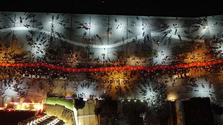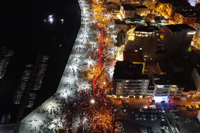 Dev Türk bayrağının da açıldığı fener alayı, Cumhuriyet Meydanı, Demiricoğlu, İnönü Caddesi, Piri Reis Caddesi ve Kayserili Ahmet Paşa Caddesi’nin ardından iskele meydanında sona erdi.