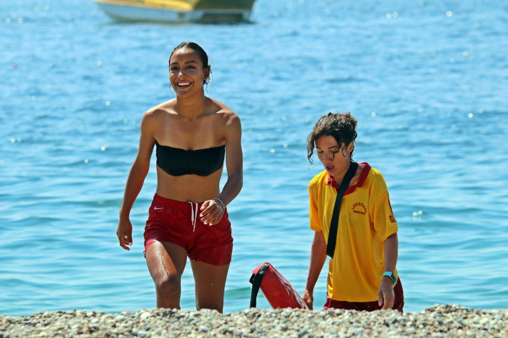 Sahilde görev yapan 7 kadın cankurtaran, iyi yüzücülüklerinin yanı sıra teknik donanımlarıyla da göz dolduruyor. Boğulma vakası tatbikatında su da çırpınan kadına kısa sürede ulaşan cankurtaran, can simidi yardımıyla ilk temasta bulunduğu vakayı aynı süre içerisinde kıyıya ulaştırmayı başardı.