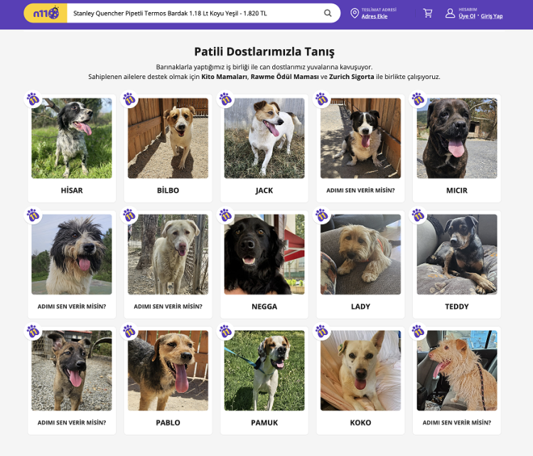 n11, evcil hayvan sahiplendirme projelerine verdiği sürekli destekle bir kez daha örnek bir projeye imza atıyor. Mama, çelik köpek kulübesi bağışı, pet festivali gibi geçmişte de benzer desteklerle can dostların sıcak yuvalarına kavuşmalarını da sağlayan n11, bu kez Göktürk Hayvan Sevenler Derneği ile iş birliği yaparak barınaktaki köpekleri yeni aileleriyle tanıştırıyor. Barınaklardaki köpeklerin yeni evlerini bulmalarına yardımcı olan n11, barınaktaki bir cana yuva olanlara; yıllık olarak sigortaladım.com ve Zurich Sigorta ile sunulan n11pet Evcil Hayvan Sigortası, bir yıl boyunca Kito ve Rawme mamalarda %30 indirim gibi avantajlar sunuyor. Göktürk Hayvan Sevenler Derneği koruması altındaki sahiplenilebilecek patili dostların bilgilerine ve fotoğraflarına n11’in Yaşasın proje sayfasından ulaşılıyor ve başvurular bu sayfadan toplanıyor.