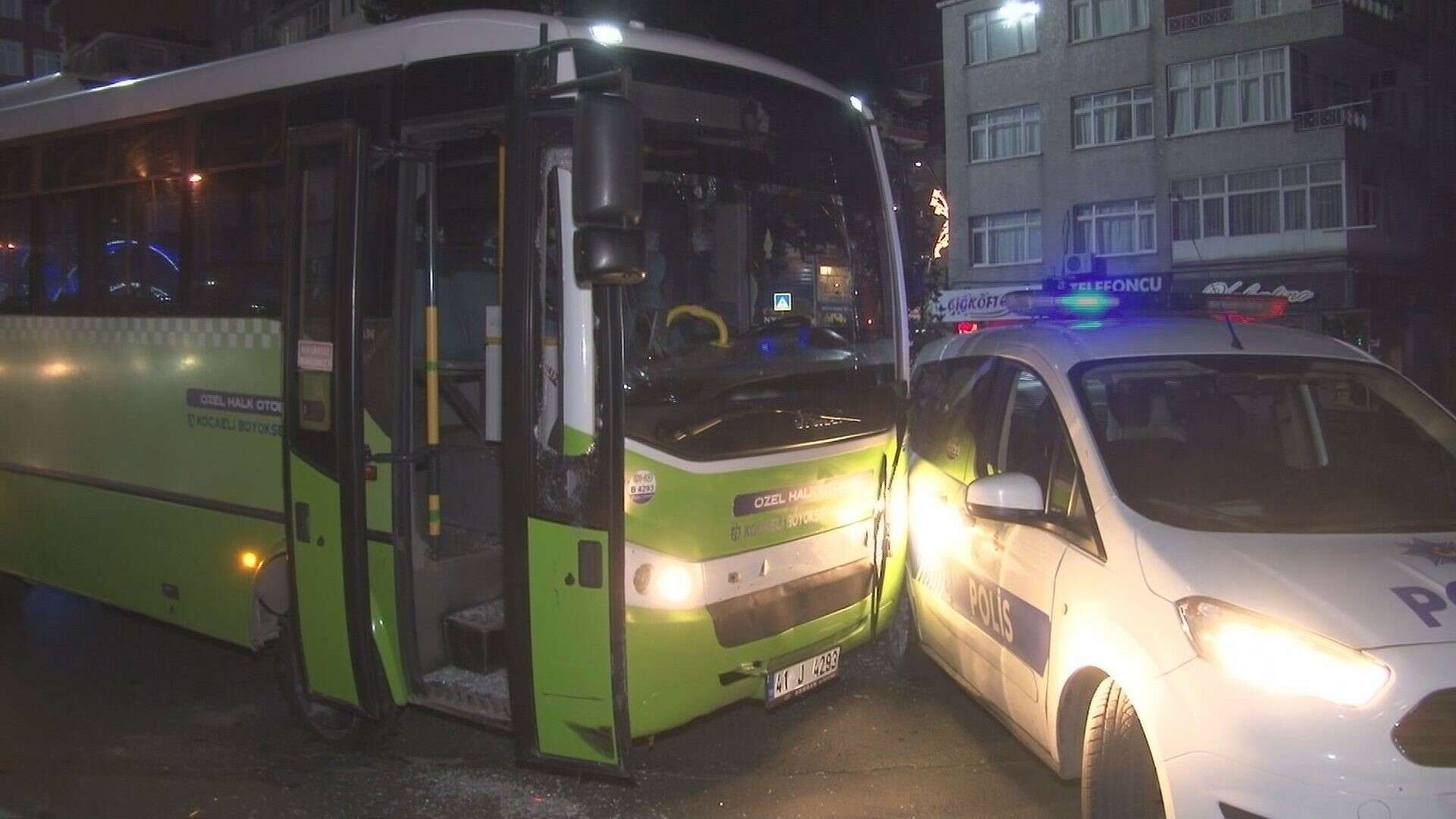 Pendik D-100 Kara Yolu'nda seyir halinde olan Kocaeli Büyükşehir Belediyesine ait özel halk midibüsü yol üzerindeki otomobillere çarpıp yoluna devam etti. Trafik polislerinin takip ettiği midibüsün Şişli'de önü kesildi. "Dur" ihtarına aldırış etmeyen şoför Bahçelievler'de yakalandı. Midibüs şoförü gözaltına alındı.