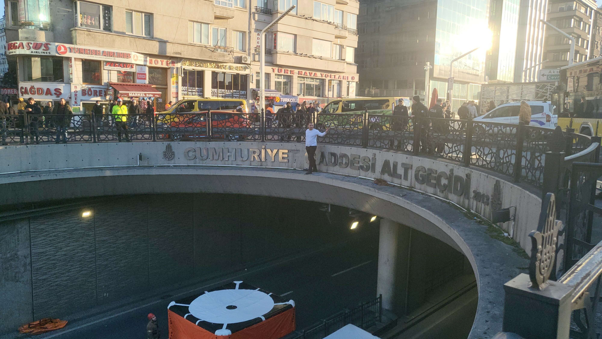 Beyoğlu Cumhuriyet Caddesi alt geçidinde Ukraynalı eski bir polis olduğu iddia edilen şahıs, geçidin üzerindeki demir korkulukları aştı.