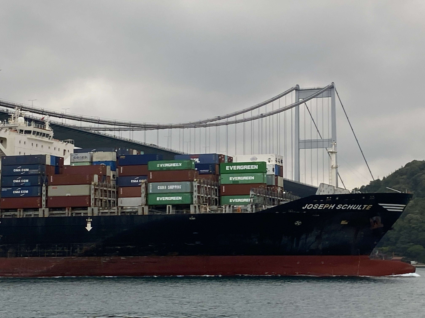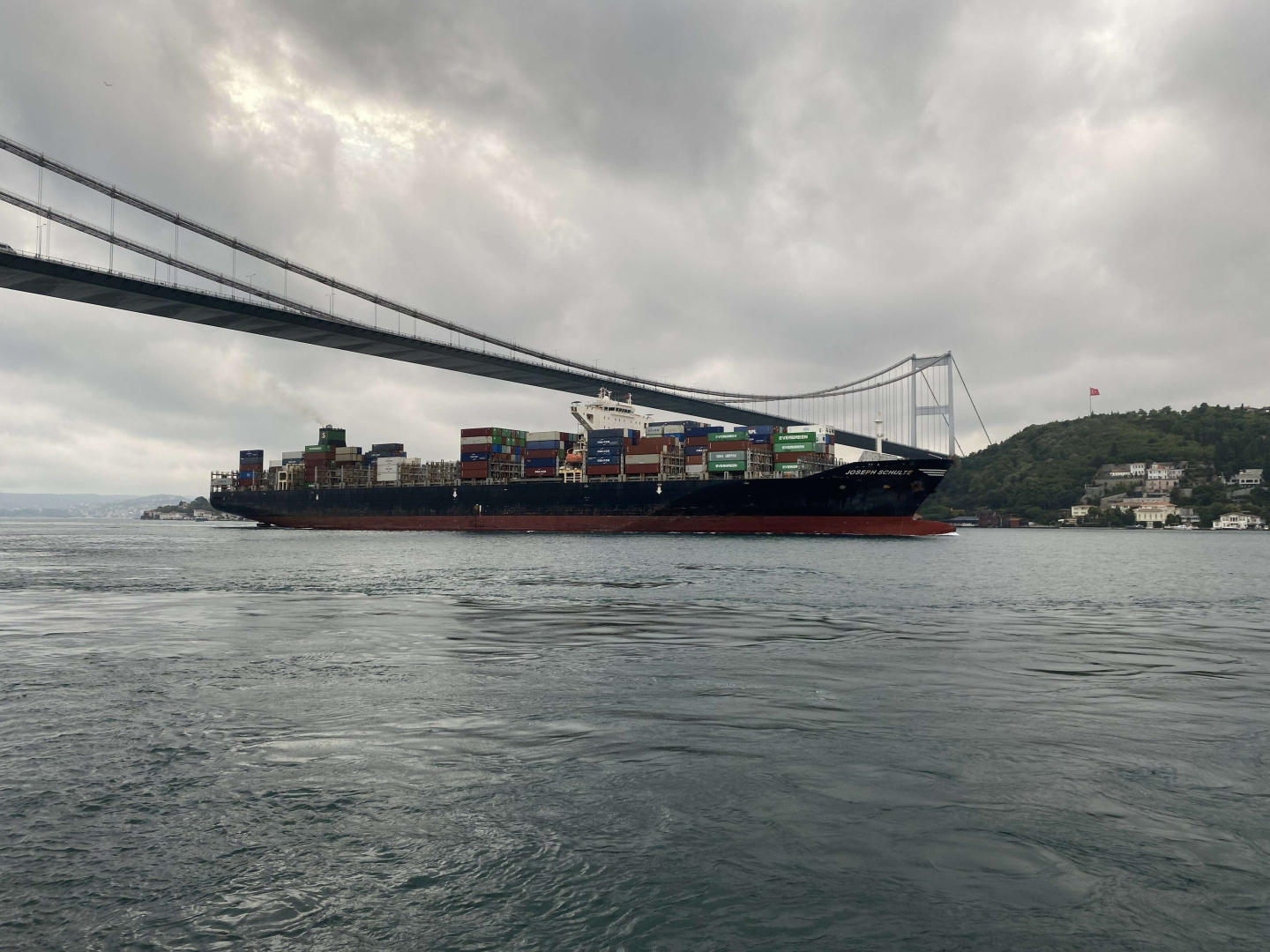 17 Temmuz'da Rusya'nın tahıl koridoru anlaşmasından çekilmesi sonrası Ukrayna'dan yola çıkan Hong Kong bandıralı Joseph Schulte isimli konteyner yüklü ilk gemi İstanbul Boğazı'ndan geçerek Ambarlı Limanı açıklarına demirledi. Geminin boğazdan geçişi havadan görüntülendi.