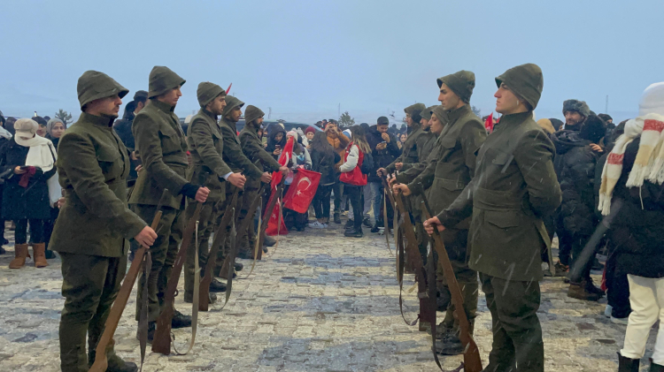 Sarıkamış Harekatı'nın 110'uncu yılında üniversite öğrencileri, sıfırın altında 12 derecede kar yağışı altında saygı nöbeti tutarak şehitleri andı.