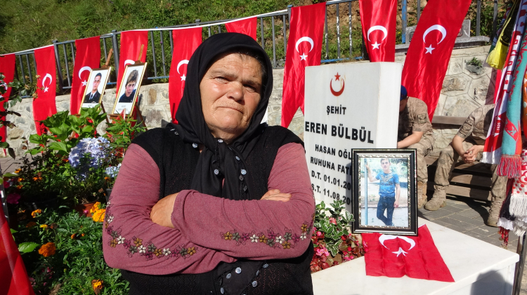 Tören sonrası konuşan ve günler geçtikçe acısının daha da büyüdüğünü dile getiren Eren Bülbül'ün annesi Ayşe Bülbül, "Günler geçtikçe benim acım daha da büyüyor. Zaten üzüntüm de belli. Zaman ilerledikçe içimdeki acı dinecek sandım. İçimdeki acı git gide büyüyor. Yapacak bir şeyim yok. Acı acıdır. Yıllar geçse de ben evladımı unutamam. Evladımla gurur duyuyorum. Benim evladım küçücüktü. Benim evladımı benden kopardılar, yakamdan aldılar. Büyük bir acı ve hüzün. Yıllar geçse de onu unutmam. Bu acıyla ölüp, evladıma kavuşacağım günü bekliyorum. İnşallah ümit ettiğimiz gibi olur. Evlatlarımız ister görevi başında ister ocağının başında olsun. Görevini yapıyor ve maalesef şehit ediliyor. Evinin kapısının önünde olan da şehit ediliyor. Terör bitsin, bitmesini istiyorum. Benim içimde yanan ateşi ben biliyorum. Onun için terör bitsin diyorum. İnşallah da biter" dedi.