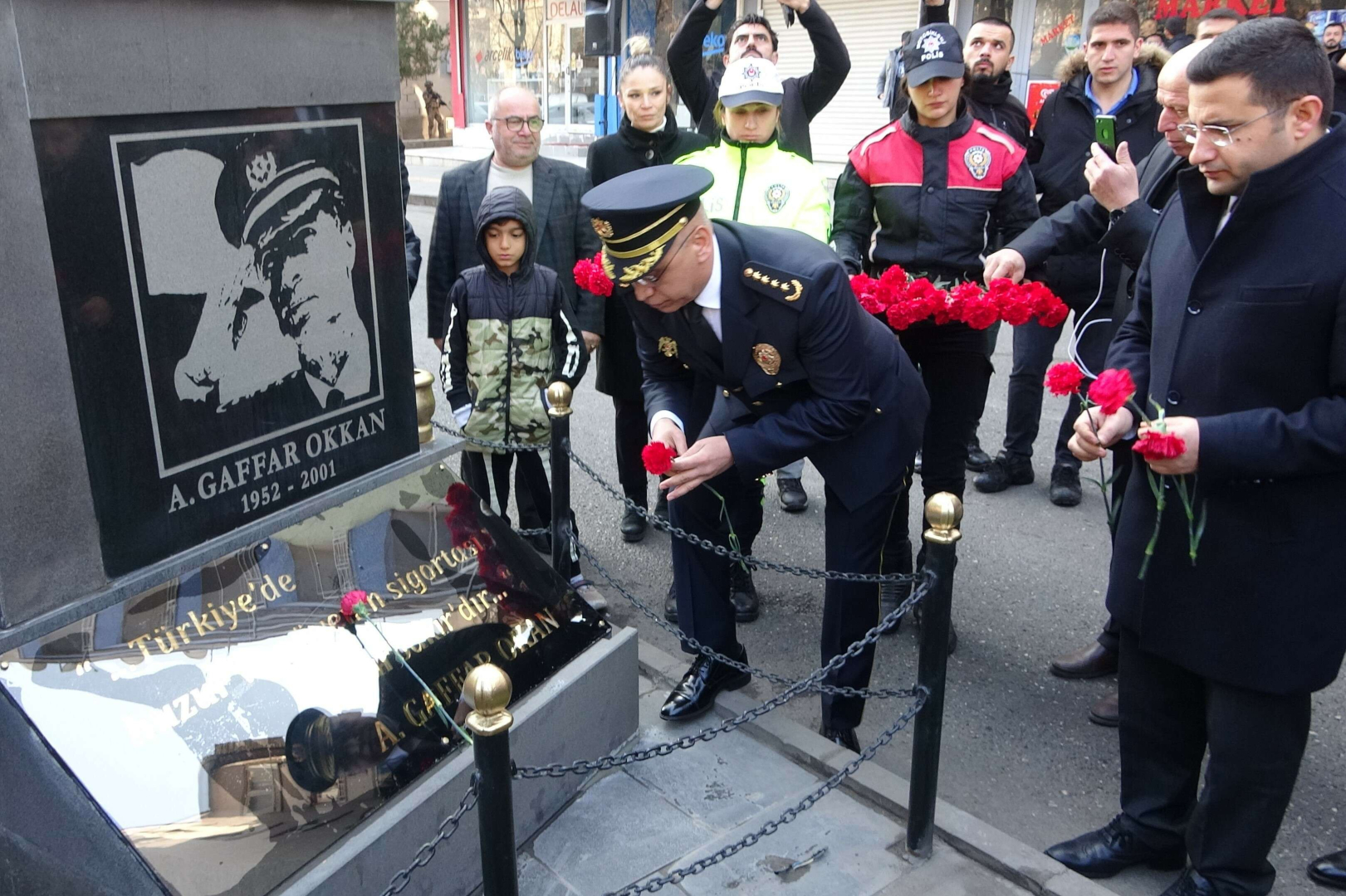 Düzenlenen törende konuşan İl Emniyet Müdürü Fatih Kaya, şehit Okkan ve silah arkadaşlarını şehadet mertebesine eriştiklerinden dolayı andı. Kaya, “Bugün burada 24 Ocak 2001 tarihinde bundan tam 22 yıl önce Diyarbakır İl Emniyet Müdürü olarak görev yaptığı esnada hain saldırı sonucu şehit düşen emniyet müdürümüz Ali Gaffar Okkan ve silah arkadaşlarını şehadet mertebesine eriştikleri bu noktadan anıyoruz” dedi.