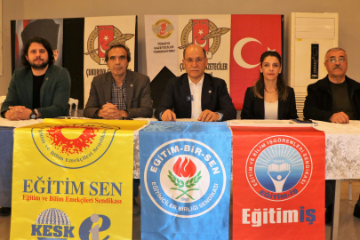 Çukurova Gazeteciler Cemiyeti Sosyal Tesisleri'nde düzenlenen basın açıklamasına Eğitim-Bir-Sen Adana Şube Başkanı Mehmet Sezer'in yanı sıra, Eğitim-İş Adana 1 Nolu Şube Başkanı Seher Ergin, Eğitim-İş Adana 2 Nolu Şube Başkanı Emin Erkan Şenol, Eğitim-Sen Adana Şube Başkanı Hüseyin Kaya ve Hürriyetçi Eğitim Sen Adana Şube Başkan Ergun Ayyıldız katıldı.