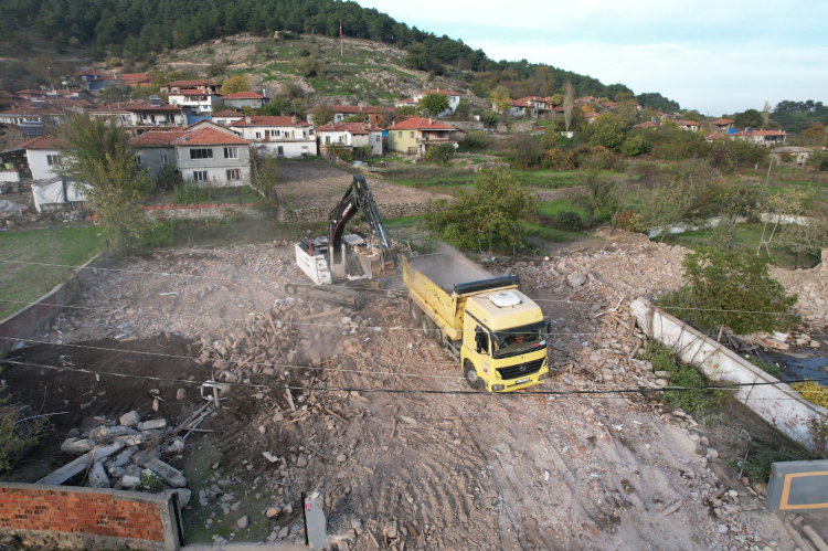Sındırgı'da depremde hasar gören yapıların yıkımı kırsalda sürüyor