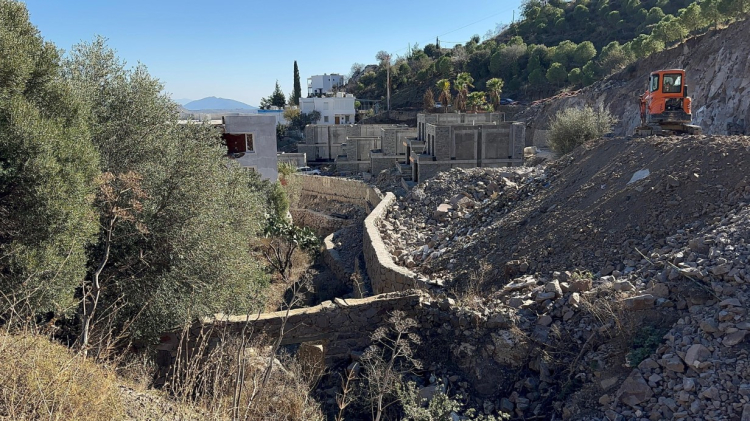 Muğla Çevre, Şehircilik ve İklim Değişikliği İl Müdürlüğü ekipleri, sanatçı Mehmet Suavi Saygan’a ait arazide gerçekleştirdiği incelemelerde Bodrum Belediyesi’nin onayladığı projede yer alan ’ağaç rölöve paftası’na göre korunması ve taşınması gereken ağaçların kesildiğini belirledi. İncelemeye göre 29 ağacın taşınmadığı, 11 ağacın ise korunması gerekirken yok edildiği tespit edildi. Arazinin kuzeybatısında bulunan park alanında da benzer bir doğa katliamı yaşandığı ortaya çıktı. Alanda bulunan tüm ağaçların kesildiği ve yalnızca bir zeytin ağacının bırakıldığı görüldü. Ağaçsız bırakılan park alanının durumu, ekiplerce yerinde kayıt altına alındı. Projeye uygunluk denetiminde yalnızca ağaçların değil, yapıların da usule aykırı olduğu tespit edildi. Projede 50 santimetre yüksekliğinde taş duvar olarak belirtilen yapıların mahallinde tuğla ile inşa edildiği ve üzerlerine sıva ya da taş kaplama yapıldığı belirlendi.