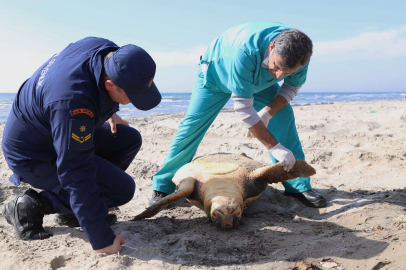 Tekirdağ’ın Marmaraereğlisi ilçesine bağlı Yeniçiftlik'te sahile vuran bir caretta caretta olduğu bilgisi üzerine Sahil Güvenlik Komutanlığı ile belediye veteriner hekimi kısa sürede bölgeye gitti.