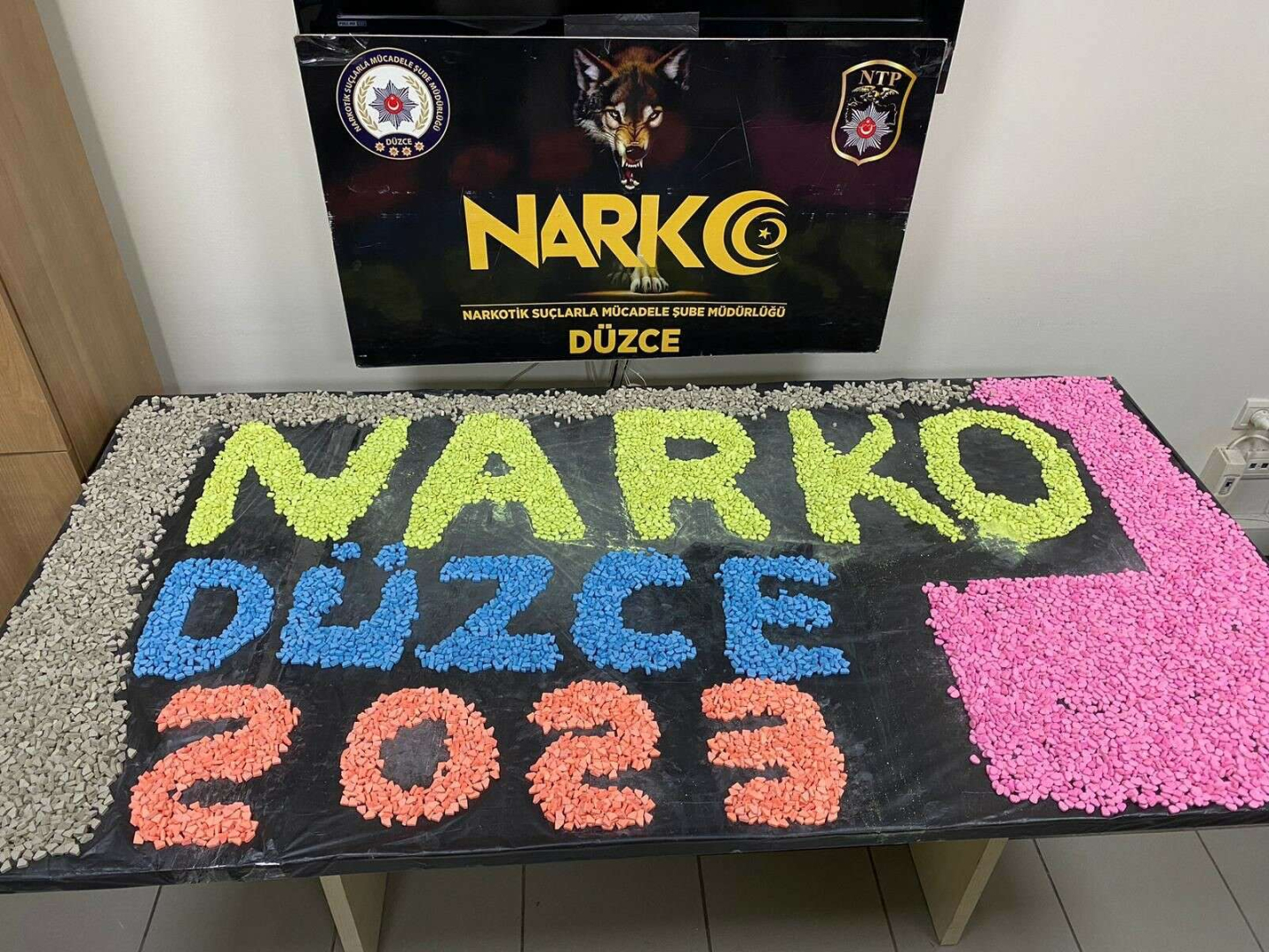 TEM Otoyolu Düzce geçişinde narkotik ekipleri tarafından şüphe üzerine durdurulan otomobilde 34 bin 589 adet uyuşturucu hap ele geçirildi. Kentte ilk kez bu kadar yüksek miktarda uyuşturucu hap ele geçirildiği öğrenildi.
