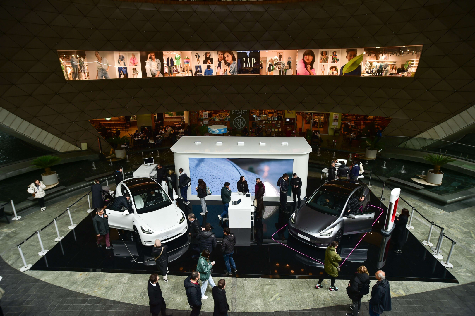 Tesla otomobiller İstanbul’da iki yakada sergileniyor ve alıcılarını bekliyor. Avrupa yakasında Levent’te, Anadolu yakasında ise Üsküdar’da bulunan AVM’lerde sergilenen araçlar meraklıları tarafından yoğun ilgi görüyor.