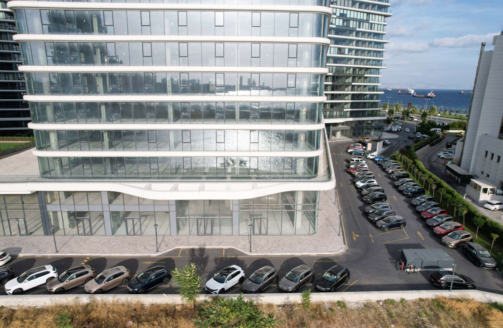 TOGG’UN BEYAZ RENKLİ PAMUKKALE MODELİ PARK ALANINDA DİKKAT ÇEKİYOR