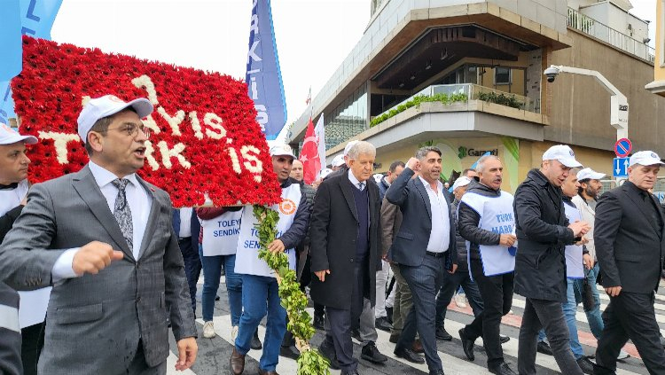 Türkiye İşçi Sendikaları Konfederasyonu (TÜRK-İŞ) 1 Mayıs Emek ve Dayanışma Günü nedeniyle Kazancı Yokuşuna Kazancı Yokuşu'na karanfil ve Taksim'e çelenk bıraktı.