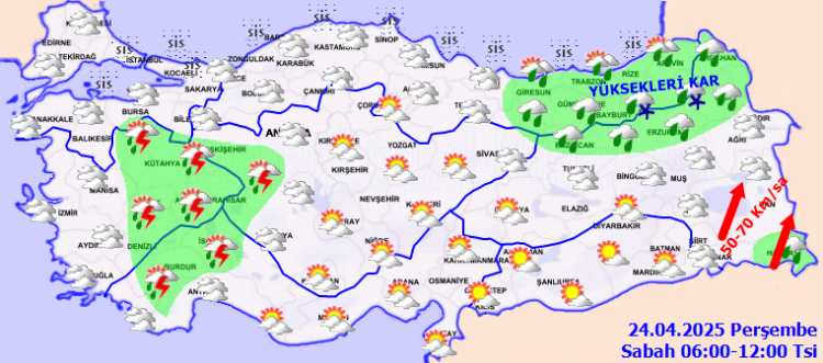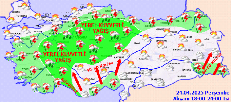 Meteoroloji Genel Müdürlüğü, 24 Nisan Perşembe gününe ilişkin hava tahmin raporunu yayımladı.