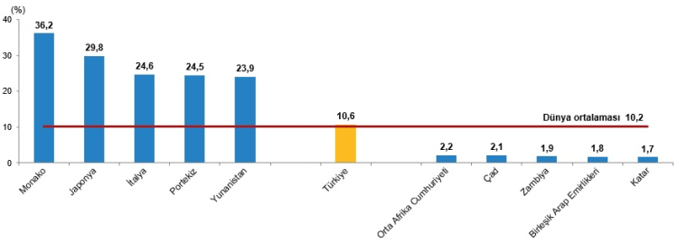 Türkiye, yaşlı nüfus oranına göre sıralamada 194 ülke arasında 75. sırada yer aldı