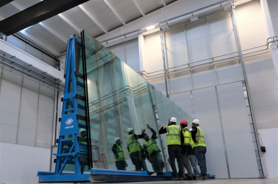 Türk cam işleme sanayiinde bir ilke imza atıldı. Firmanın kurduğu, 12 metre uzunluğunda cam işleme kapasitesine sahip olan Türkiye’nin ilk tesisi için ilk kez 12 metrelik cam üretimi yapıldı.