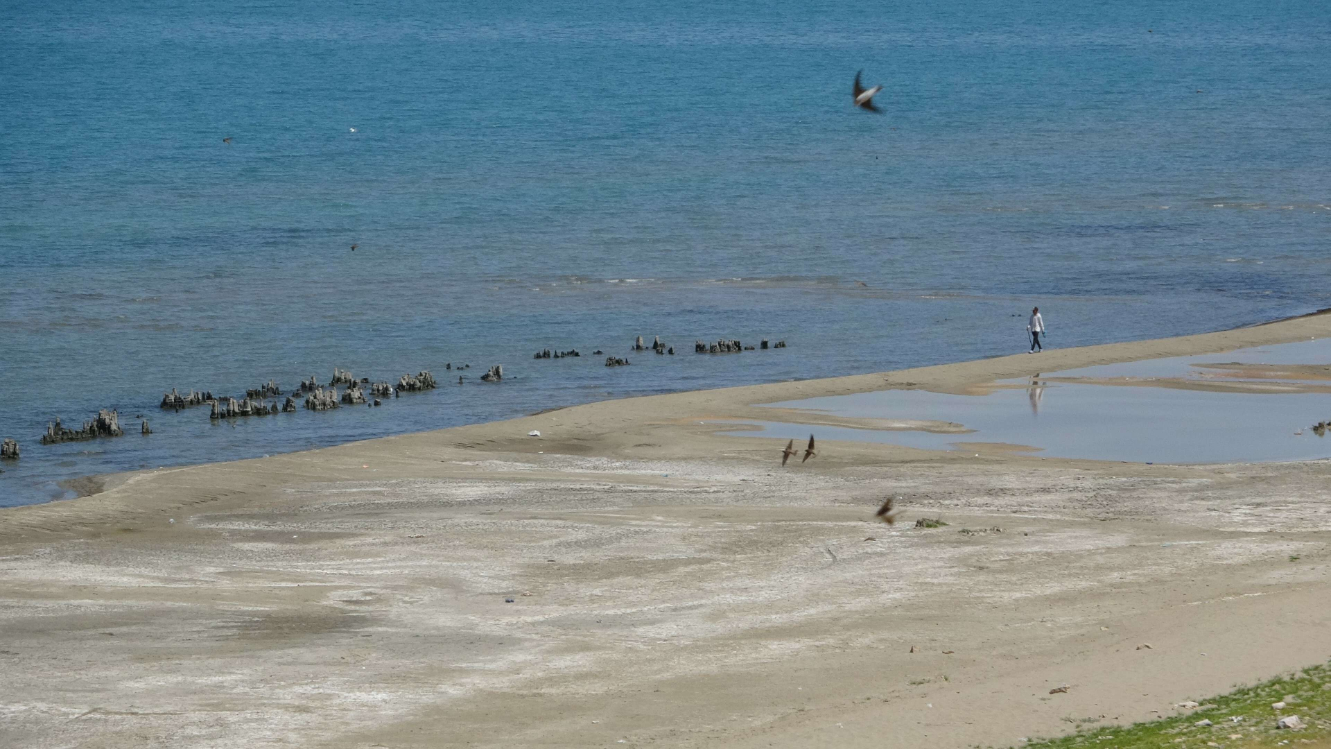 İlkbahar yağışlarıyla iyileşmenin görüldüğü Van Gölü'nde sıcak hava dalgasının getirdiği buharlaşmayla birlikte sular yeniden çekilmeye başladı.