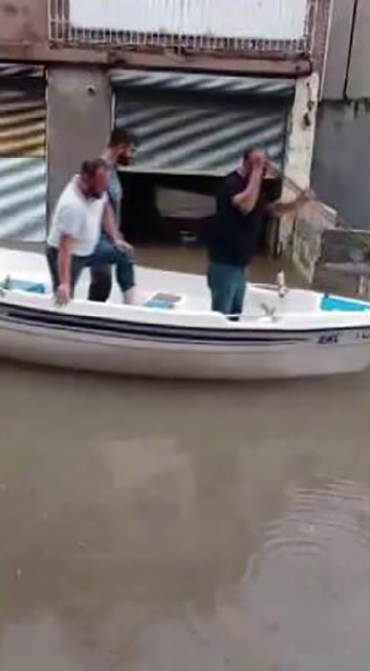Adana’da şiddetli yağış nedeniyle su basan sokakta bazı vatandaşlar kayıkla gezip o anları sosyal medyada paylaştı.