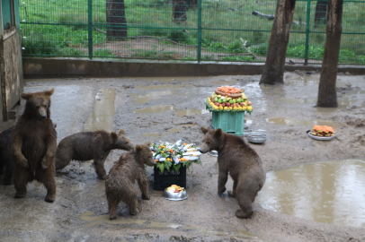 Bursa ve Giresun'da doğada yaralı halde bulunup Bursa'da tedavi altına alınan 5 yavru ayı için 1. doğum günü kutlaması yapıldı.