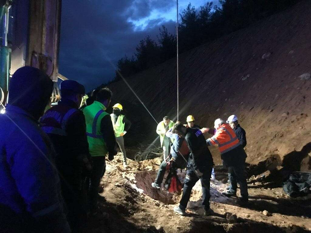 Bilecik'te Yüksek Hızlı Tren inşaatında yaklaşık 25 metrelik köprü kuyusuna düşen işçi yaralandı.