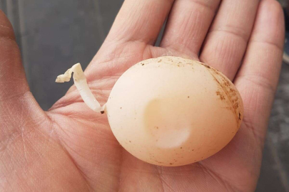 Diyarbakır’ın Çınar ilçesinde esnaflık yapan Beşir Akbuğa isimli vatandaşın çocukları kahvaltı yapmak için sabah kümese gidip yumurta almak isterken değişik yumurta ile karşılaştı. Yumurtanın yumuşak ve kuyruklu olduğunu fark eden çocuklar, durumu babalarına bildirdi.