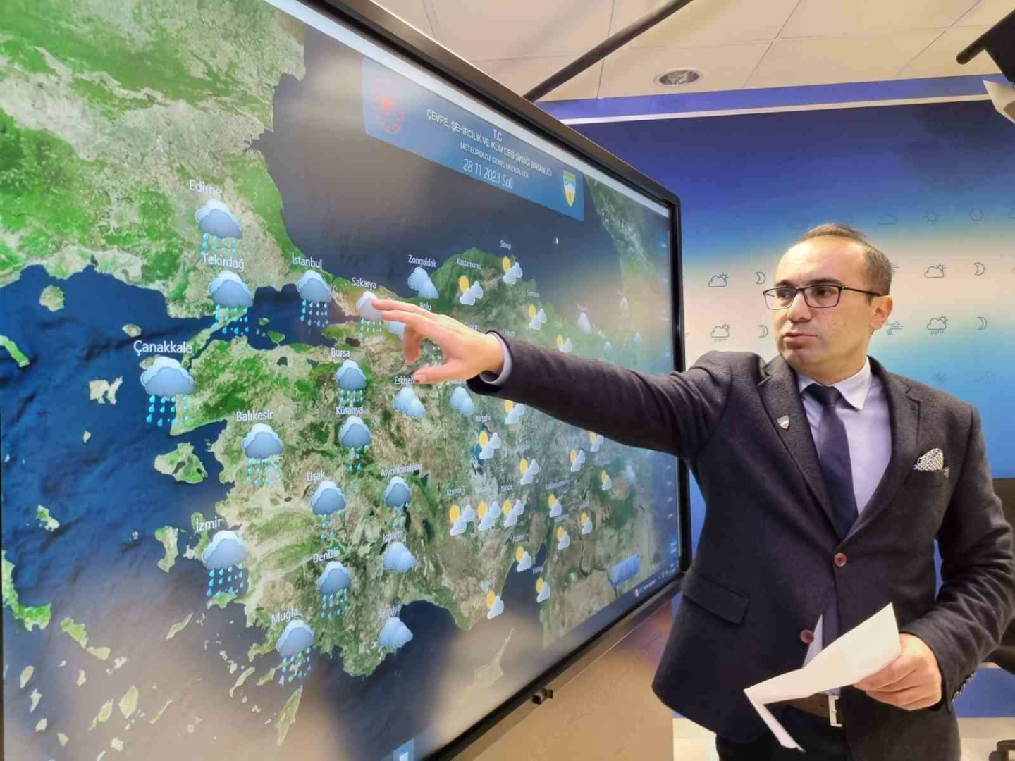 Çevre, Şehircilik ve İklim Değişikliği Bakanlığı Meteoroloji Genel Müdürlüğü Hava Tahmin Uzmanı Cengiz Çelik, yurt genelinde yaşanacak hava durumuna ilişkin yaptığı açıklamada Türkiye’nin neredeyse tamamını etkileyen soğuk ve yağışlı sistemin kuzeydoğuya doğru ilerlediğini belirterek, sistemin salı gününden itibaren yurdu terk edeceğini söyledi. "Ancak salı günü sabah saatlerinden itibaren Kıyı Ege’den başlayarak yeni bir ılık ve yağışlı sistemin etkisi altına gireceğiz" diyen Çelik, bu sistemin salı günü için Marmara, Ege ve Batı Akdeniz’de yağışlara sebep olacağını aktardı. Çelik, çarşamba ve perşembe günleri Marmara, Ege, Batı Akdeniz ile İç Anadolu’nun batısı, batı ve Orta Karadeniz’de yağışlara sebep olacağını, sistemin batı bölgelerde de zaman zaman kuvvetli olacağını kaydetti. Salı günü Çanakkale ile Muğla arası ile Aydın ve Muğla’nın kıyı kesimlerinde çok kuvvetli yağışlar beklediklerini bildiren Çelik, "Çarşamba günü için ise Marmara, Ege, Antalya çevreleriyle, Batı Karadeniz kesimlerinde yine kuvvetli yağışlar bırakacak. Rüzgarlar şu anda batı bölgelerimiz artık kesildi diyebiliriz ancak bu sistemle birlikte salı günü akşam saatlerinden itibaren önce Marmara ve Ege genelinde güneybatı yönlerden seksen kilometreye varan hızlarda rüzgar bekliyoruz" diye konuştu.