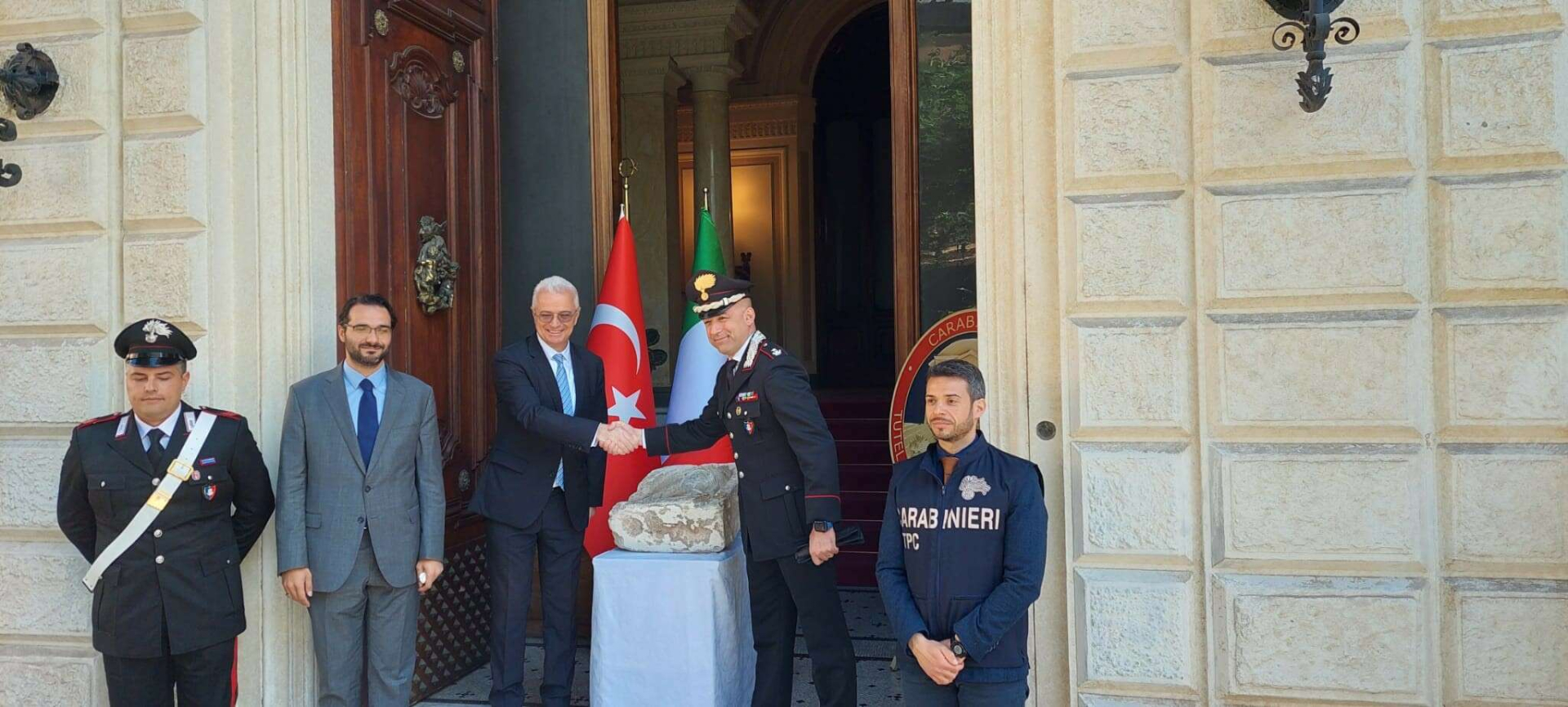 Kültür ve Turizm Bakanı Mehmet Nuri Ersoy, "M.S. 2. yüzyıla ait olan mezar stelini İtalya'da teslim aldık" dedi.