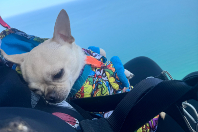 Sevimli köpek 'Kaju' 530 metre yükseklikten paraşütle uçtu