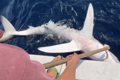 Yunanlılara kafa tutması ile bilinen balıkçının ağına vahşi köpek balığı takıldı