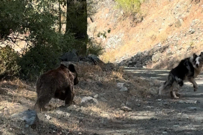 Köpeği ile gezerken yavru ayı ile karşılaştı