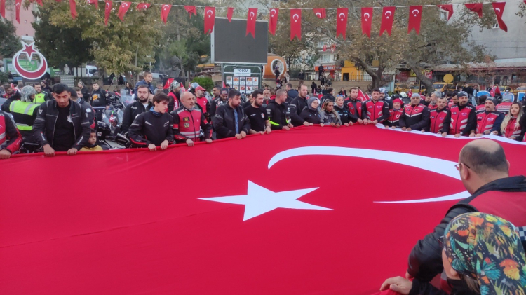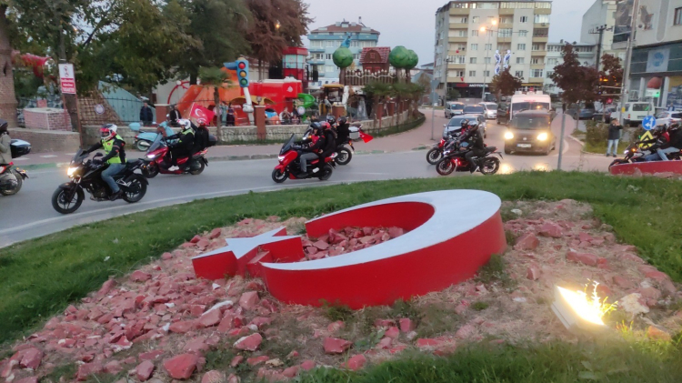 Orhangazi’de akşam saatlerinde toplanan 150 motosikletçi Cumhuriyet Alanında bir araya geldiler. Orhangazi Motosiklet Kulübü, Yeşil Bursa Motosiklet Kulübü, Tüm Emekçi Motosikletli Kuryerle Derneği (TEMKUD), Gezginler Motosiklet Kulübü, İnegöl Motosiklet Kulübü, Moto TİM, Fatih Motosiklet Kulübü üyesi 150 motosiklet ve 200’e yakın motosiklet tutkunu, Cumhuriyet Alanında dev Türk bayrağı açtı. Saygı duruşunda bulunan ve İstiklal Marşı okuyan 150 motosiklet Türk bayrakları ve marşlar eşliğinde Orhangazi ilçe merkezinde şehir turu atarak Cumhuriyet’in 101. yıldönümü kutladı.