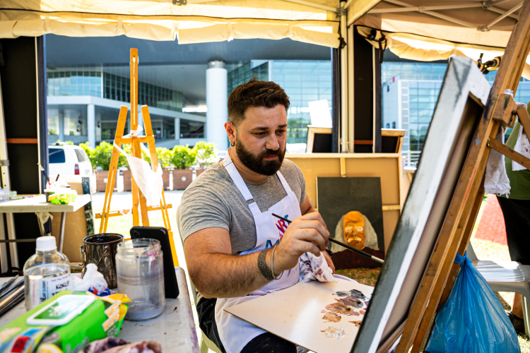 Merinos Atatürk Kongre ve Kültür Merkezi Parkı’nda kurulan “Artmeydan”da ressamlar eserlerini halkla iç içe resmetti