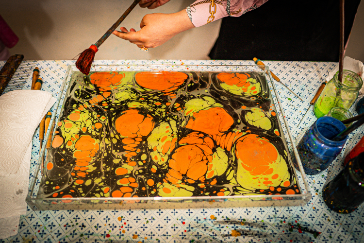 Elmas Sanat Atölyesi’nde “Ebru” sanatında eserler üreten katılımcılar, Yihmed Zahide Sanat Evi’nde gerçekleşen “İpek Koza Çiçek Yapımı Atölyesi” ile ilham dolu deneyimler yaşadı.