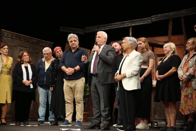 Oyunda emeği geçenleri tebrik eden Başkan Mustafa Bozbey, “Genel Sanat Yönetmeni Ali Düşenkalkar ile bundan sonra çok güzel işlere imza atacağız. Tiyatroyu, 17 ilçemize de taşıyacağız” dedi.