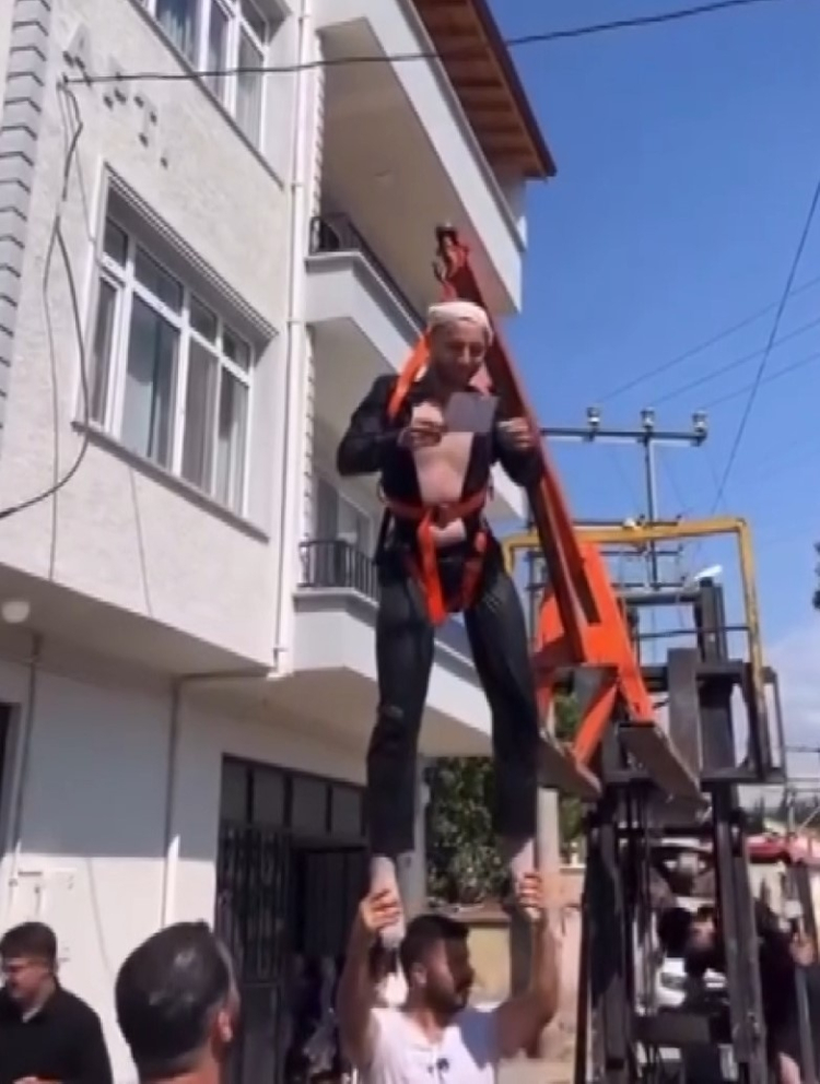Damadı forklifte astılar, bahçe hortumuyla yıkadılar