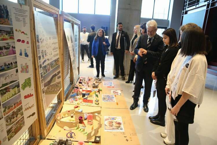 Konuşmaların ardından projeye katılan çocuklar gruplar halinde çalışmalarını anlattı. Etkinlik sonunda Başkan Turgay Erdem çocukların tasarımlarını yakından incelerken, katılım belgelerini de vererek kutladı.