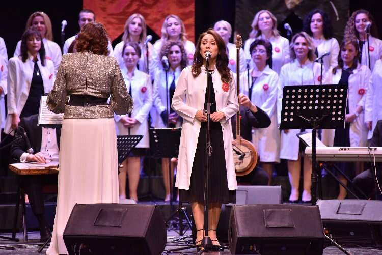 Bursa Büyükşehir Belediyesi tarafından 14 Mart Tıp Bayramı Haftası münasebetiyle düzenlenen konserde beyaz önlükleriyle sahne alan hekimler, sanat güneşi Zeki Müren’in eserlerini büyük bir başarıyla seslendirdi.