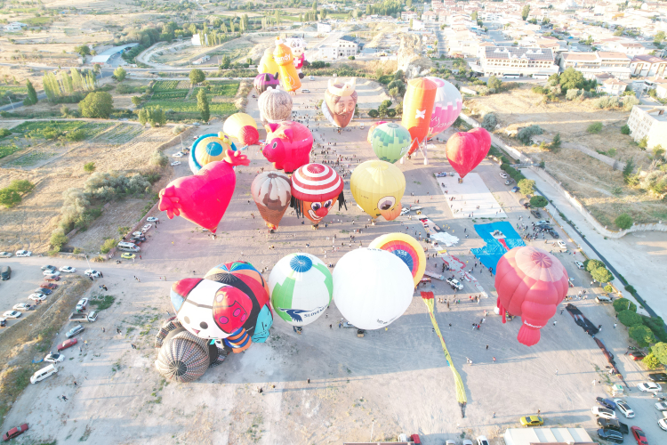 Göreme beldesindeki festival alanında, sabahın erken saatlerinde ekiplerin hazırlıklarının ardından çeşitli figürlerdeki balonlar peş peşe gökyüzüne yükseldi. Gökyüzüne yükselen balonlar görsel şölen oluşturdu. Değişik renk ve figürlü sıcak hava balonları, Kapadokya'nın eşsiz manzarasında peribacaları ve doğal kaya oluşumlarının üzerinde süzülürken, yerli ve yabancı turistler ortaya çıkan renkli manzarayı izledi.