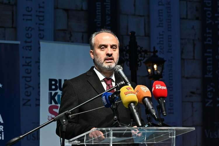 Sözlerine Ahmet Hamdi Tanpınar’ın ‘Beş şehir’ adlı eserinden “İlk kuruluş çağının havasını saklar, onun arasından bizimle konuşur, onun şiirini teneffüs eder. Bu devir haddi zatında bir kahramanlık ve ruhaniyet devri olduğu için, Bursa, Türk ruhunun en halis ölçülerine kendiliğinden sahiptir, denilebilir.” ifadeleriyle başlayan Büyükşehir Belediye Başkanı Alinur Aktaş, büyük edebiyatçının gördüğü Bursa’yı tekrar canlandırmak için gayret ettiklerini söyledi. Gizli hazineleri görünür kılmanın, yıpranan yapıları tamir etmenin, yıkılanları tekrar ayağa kaldırmanın vefa borcu olduğunu belirten Başkan Alinur Aktaş, ecdada ve tarihe hürmet kapsamında yapılan birçok çalışmanın olduğunu ifade etti. Bunların arasında kendisini en çok Bursa Mevlevihane’sinin 98 yıl sonra tekrar ayağa kaldırılmasının heyecanlandırdığını dile getiren Başkan Aktaş, “400 yıl önce Cünûnî Ahmed Dede tarafından yakılan çerağın ışığı bugün de şehrimizi aydınlatıyor çok şükür. Mevlânâ Hazretleri’nin izinde teşekkül eden mevlevilik, asırlardır hem tasavvufi hayata hem de kültür ortamına hizmet etmektedir. Mevlevilik bizlere zengin bir kültürel miras bıraktı ve bizler de bunu yaşatmanın gayreti içerisindeyiz. Bursa Mevlevihanesi bütün Bursa’nındır. Bunu sadece belediye projesi olarak düşünmemek gerekir. Şeb-i Arus programları kapsamında iki güzel sergiyi ziyarete açıyoruz. Hazret-i Mevlânâ, ilim, irfan ve hikmetle yoğurduğu Mesnevi'siyle Anadolu mayasının oluşmasında, millet olma şuurunun yerleşmesinde büyük katkılar sağlamış mutasavvıf ve mütefekkirdir. 750. vuslat yıl dönümünde Hazret-i Mevlânâ’yı rahmet ve hürmetle yâd ediyor, onun fikirlerinin ve eserlerinin bizlere ilham kaynağı olmasını diliyorum” dedi.