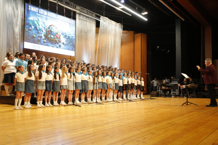 Ortaokul Müzik Öğretmeni, Şef Bahadır Sevik yönetiminde sahne alan 130 öğrenciden oluşan 3 Mart Eğitim Kurumları Korosu, birbirinden güzel ve anlamlı parçaları; hızla yok olan ormanlar, su kaynakları, tarım alanları ve doğal yaşam alanları adına farkındalık oluşturmak için seslendirdi. Gecede metin yazarlığını Ortaokul Proje Koordinatörü İbrahim Zeki Karabulut’un yaptığı ve 12 öğrenci tarafından sahnelenen oyunlar, anlatımlar ve skeçler de izleyicilerden büyük beğeni topladı.
