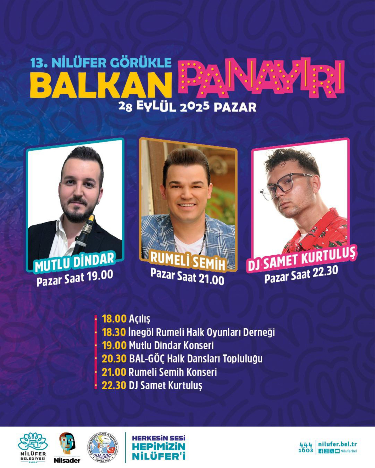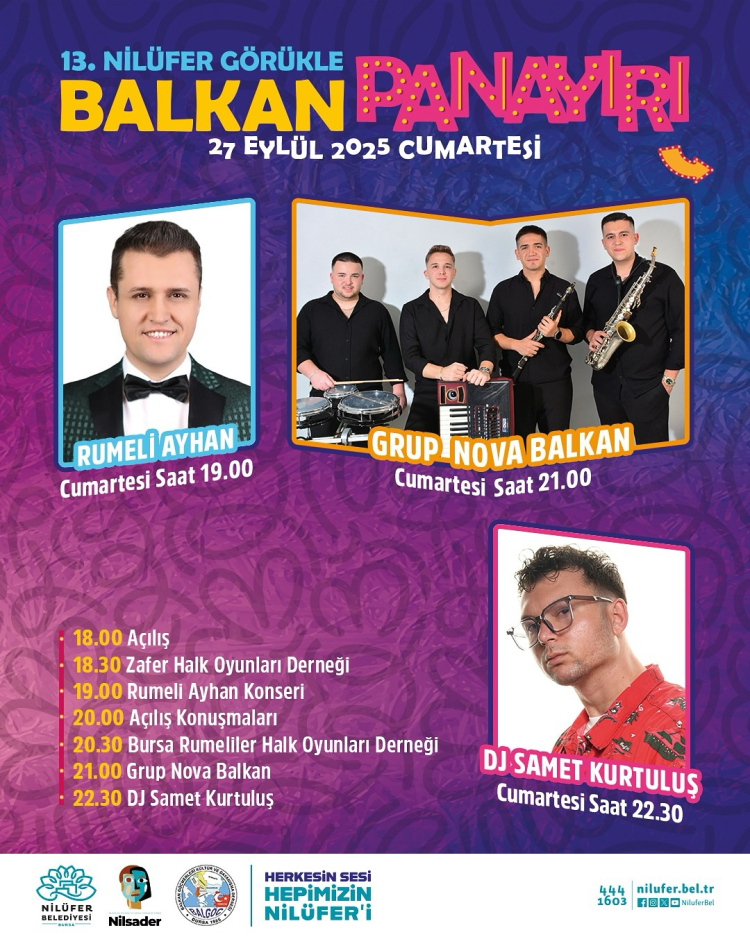 Balkan kültürü ve coşkusu Nilüfer’e taşınıyor. Bu yıl 13’üncüsü düzenlenecek olan Nilüfer Görükle Balkan Panayırı, 27 – 28 Eylül tarihleri arasında, iki gün boyunca ziyaretçilerine keyifli anlar yaşatacak.