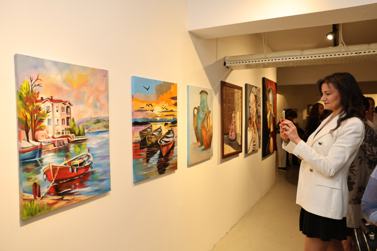 Nilüfer Sanat Atölyeleri’nde eğitimlerini tamamlayan Resim Atölyeleri Yetişkin Grubu’nun eserleri sanatseverlerden tam not aldı.