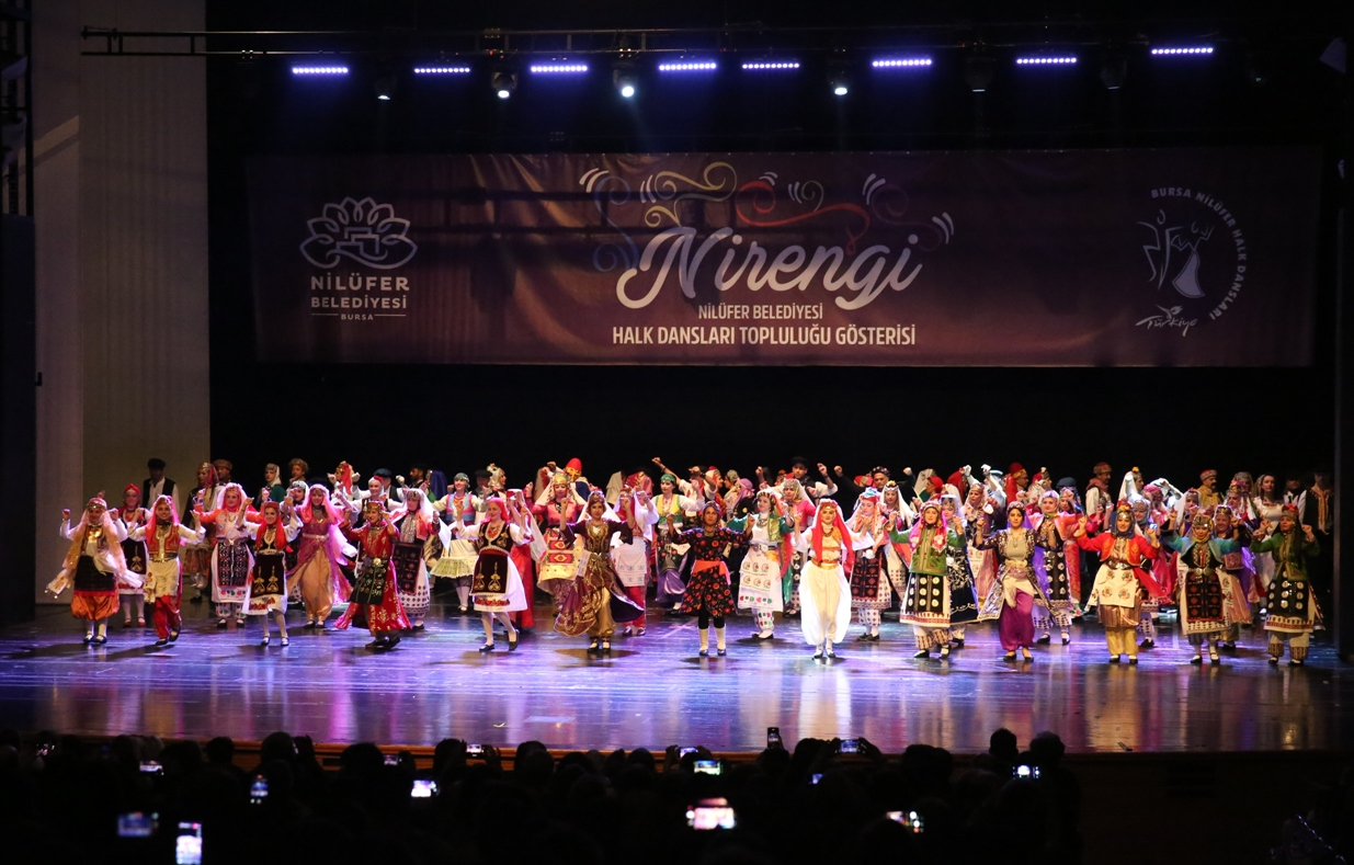Nilüfer Belediyesi Halk Dansları Topluluğu’nun Anadolu’nun yanı sıra Balkanlar ve Kafkaslar’ın kültür mozağini yansıttığı “Nirengi” adlı gösterisi izleyenleri adeta büyüledi. Gösteriyi izleyenler, Nilüfer Belediyesi Halk Dansları Topluluğu’nu ayakta alkışladı.