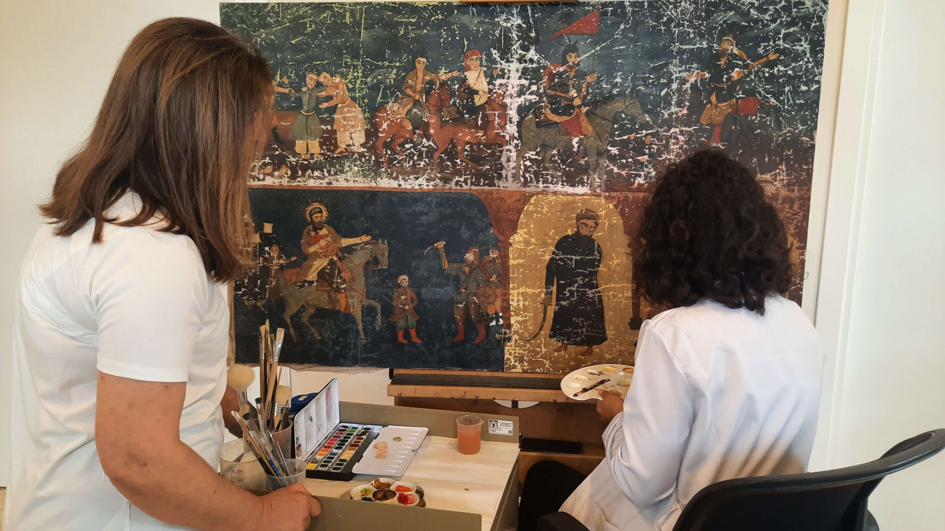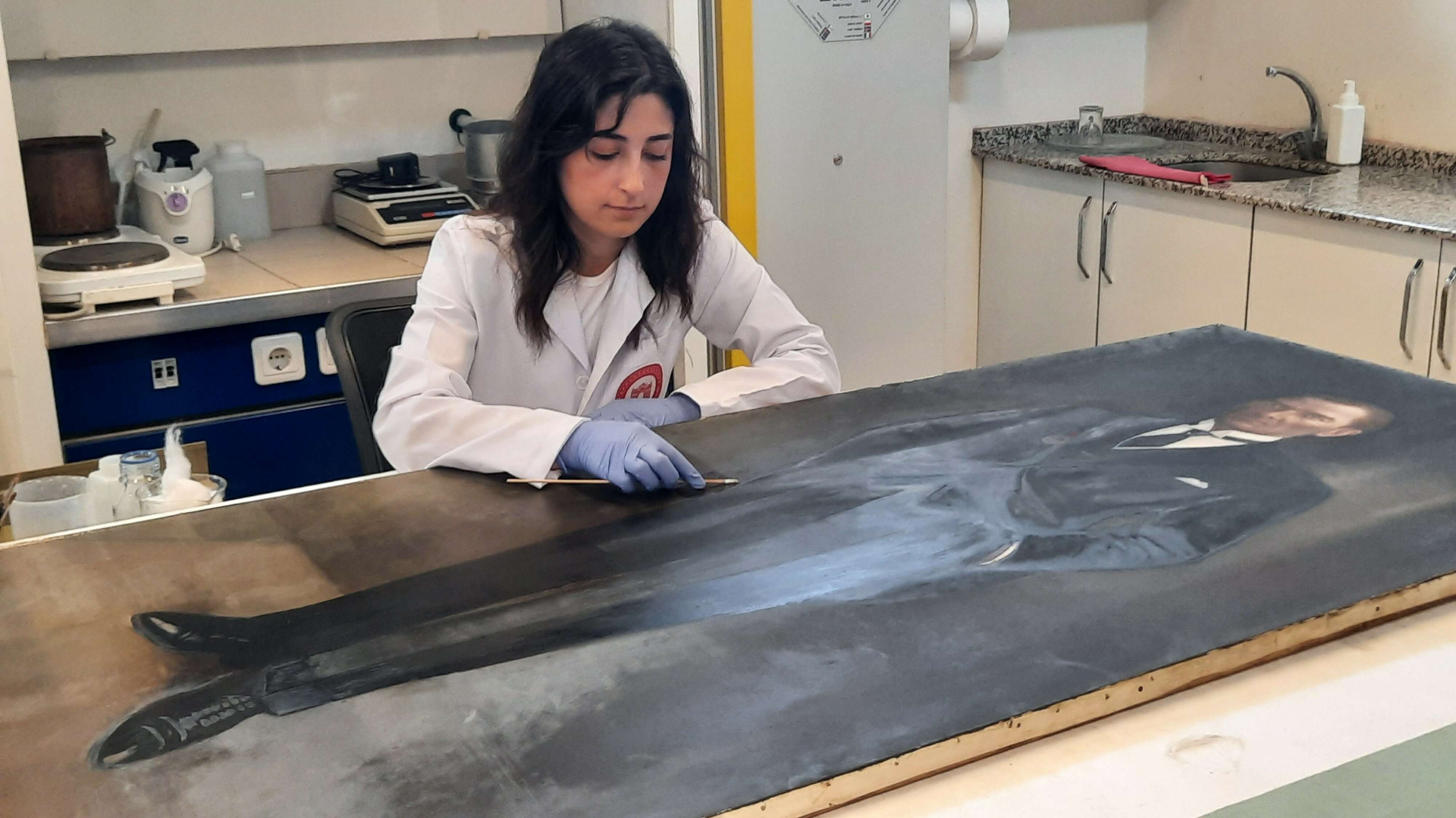 Hatice Biga, “Sekiz kişilik bir ekip olarak sahada çalışıyoruz. Milli Saraylar envanterinde yer alan ve restorasyon ihtiyacı bulunan tarihi tabloların restorasyon işlemlerini gerçekleştiriyoruz. Bahsi geçen 5 eser, 19. Yüzyıla ait eserler. Bunlarla ilgili restorasyon çalışmaları halihazırda sürmekte. Her birinde geçmişte yapılan restorasyon çalışmaları da olmuş. Bunlarla ilgili de eş zamanlı, yani bir de onları geri döndürülmesi, çevrilmesiyle ilgili işlemler gerçekleştiriliyor. Restorasyon çalışmalarında, eser atölyeye geldiğinden itibaren belgeleme çalışmalarıyla işleme başlıyoruz. Geçmişte yapılan restorasyon işlemlerinde elimizde böyle bir belge bulunmamakta. Bizler yaptığımız işlemleri, eserin atölyeye geldiği andan itibaren yapılan işlemler ve sonrasını da kapsayan bir belgeleme çalışması ve bir raporlama işlemiyle bunu tamamlıyoruz. Tablonun maruz kaldığı hastalık, buna yönelik yapılan çalışmalar; üzerindeki bozulmaların durdurulması, sonlandırılması, yapılandırılması işlemlerini kapsıyor. Her eser için de özel bir çalışma yapılıyor. Çünkü her eserin üzerindeki bozulma farklılık gösteriyor. Dolayısıyla her eserde bulunan bozulma ne ise ona yönelik çalışma gerçekleştiriliyor. Çalışmalar henüz çok taze, yeni başladı. Bununla ilgili çalışmalar devam ediyor. İki-üç ay sürecek bir çalışma diye öngörüyoruz” dedi.