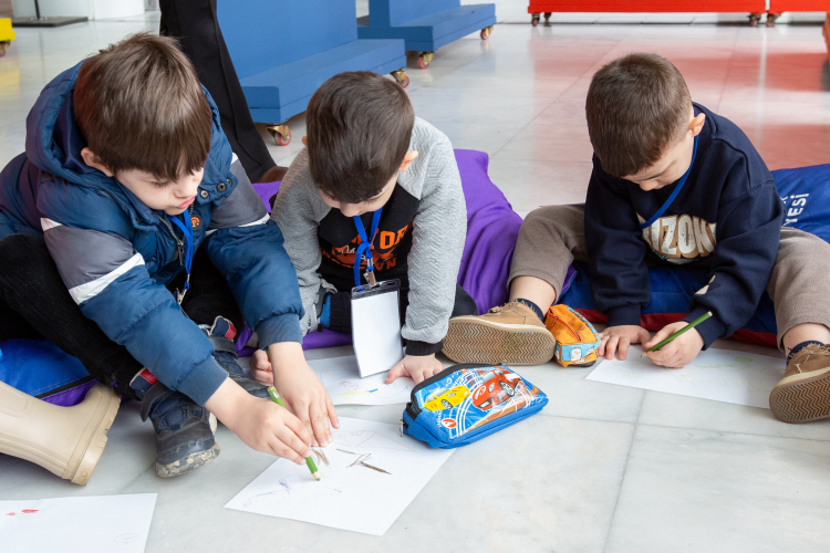 Sergide yer alan resimlerin anlatıldığı etkileşimli gezinin ardından minikler ‘Hayal et resmet’ atölyesine katıldı.