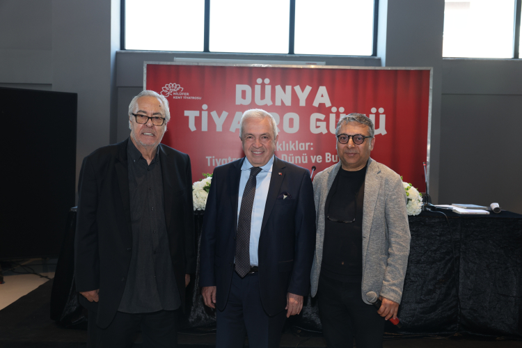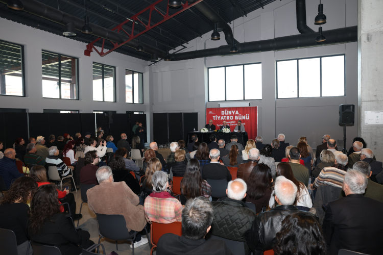 Nilüfer Belediyesi’nin Dünya Tiyatro Günü kapsamında düzenlediği “Tanıklıklar: Tiyatromuzun Dünü ve Bugünü” söyleşisi, Pancar Deposu’nda gerçekleştirildi. Nilüfer Kent Tiyatrosu yöneticisi Kazım Güçlü’nün moderatörlüğünü yaptığı söyleşide usta tiyatro sanatçısı ve yönetmen Rutkay Aziz ile Nilüfer Belediye Başkanı Şadi Özdemir yer aldı. Söyleşinin başında Kazım Güçlü, Süreyya Karacabey’in alternatif Dünya Tiyatro Günü Bildirisi’ni okudu.