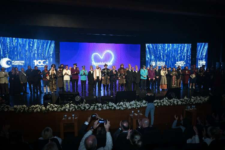 Başkan Aktaş, konuşmasının sonunda tüm bu kültür sanat faaliyetlerinden görev alan tiyatrocu, müzisyen ve kültür sanat ekibini sahneye davet edip, “Sizlerin huzurunda, bu vazifeyi birlikte gerçekleştirdiğimiz çalışma arkadaşlarıma, sanatçı dostlarıma ve emeğimizi her zaman takdirle ve teveccühle karşılayan siz değerli Bursalılara, sonsuz şükranlarımı sunuyorum” dedi.